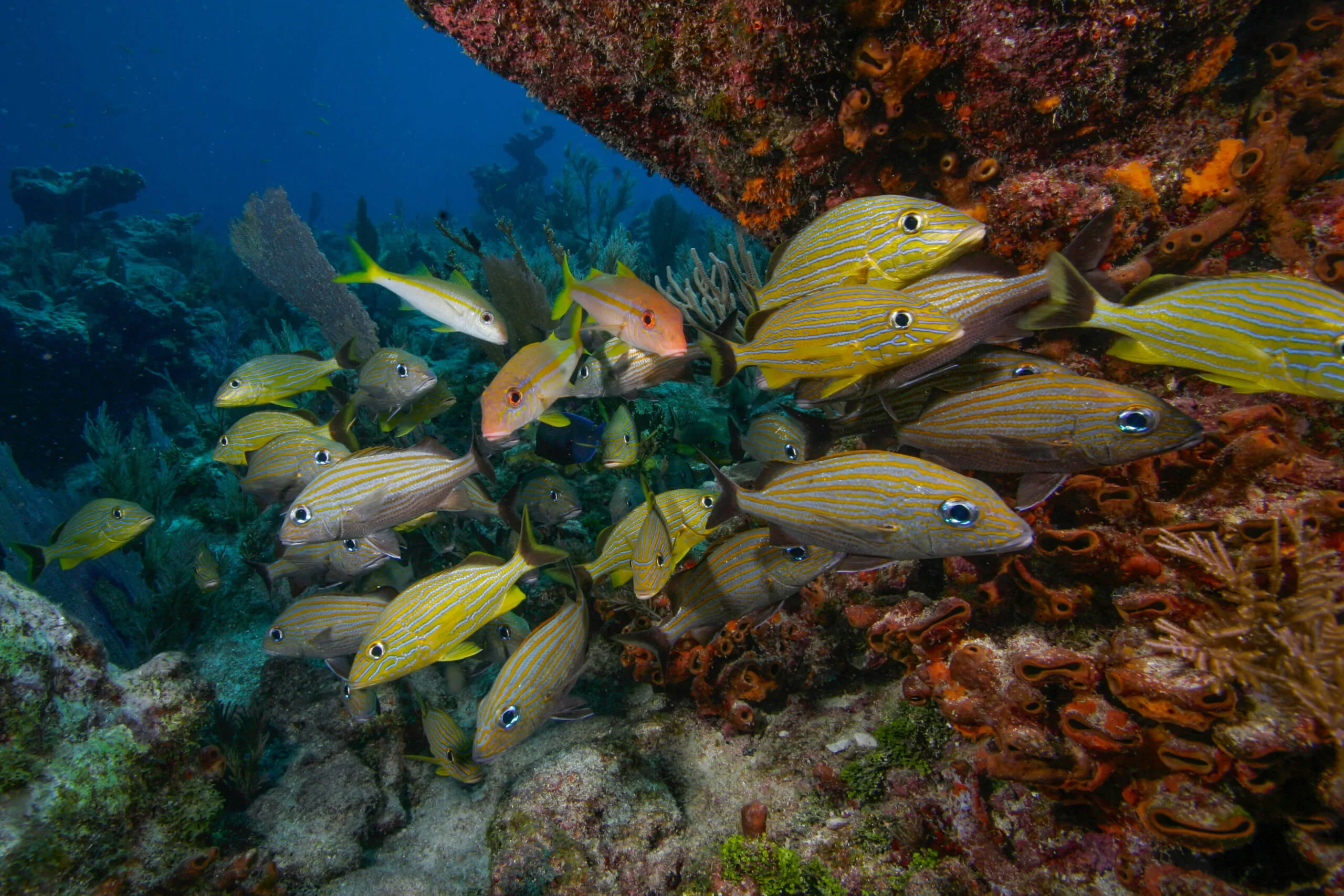 Goliath Groupers are less active than other fish and prefer to hide in or around large structures. While lucky snorkelers can spot smaller juveniles on the inner reefs, the best places to look are for the resident at the Key Largo dry rocks. Larger specimen are common on the deeper ledges of the barrier reefs. Their size alone is enough to leave even the most seasoned traveler speechless.
