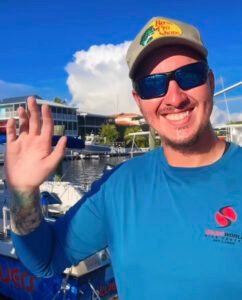 Hello, my name is Emily! Originally from Wisconsin, I wanted to escape winter and ended up in the Keys! When I’m not a deck hand on the boat you can find me working as a dental assistant or out on my paddle board exploring the mangroves. Conservation of our oceans and coastlines is a huge passion of mine and I do regular shoreline cleanups, trash pickup dives, participate in lionfish derbies, and I have my own jewelry brand where I make jewelry out of lionfish fins! I hope to see you on out the boat soon!